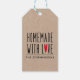 En personlig modern "handgjord med kärlek"-etikett på en kraftfärgad bakgrund. Gör den till din egen genom att lägga till ditt namn. En fin finish för alla dina hemgjorda presenter. Designad för dig av Blackberry Boulevard.
