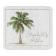 Denna vackra personliga glasskärbräda har ett tropiskt palmer. Anpassa med ditt val av namn och speciell text.