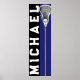 Lacrosse poster med lax stift på blå bakgrund. Så här anpassar du redigeringstexten för att lägga till spelarens namn.