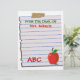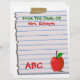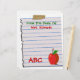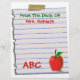 10 bästa Views Zazzle Award! Anpassa den här söta anpassningsbarna "Från skrivbordet av", med namn på den här roligten, riven, fodrad bärbar dator som är papper och testat mot en ren vit bakgrund med ABC i rött brev och en röd äppelbild på grund. Eller lämna bara ut texten helt och hållet. Byt lätt den vita bakgrunden färg och texten stil och färg. Gör en underbar anpassningsbar för lärare. Anpassa några idag! Underbar för Back to school!