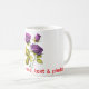 Denna personliga lila ros-mugg är perfekt för alla som älskar eleganta blommiga mönster med en anpassad touch. En rik violett ros pryder muggen, och mallen är helt redigerbar så att du kan lägga till ditt eget namn, speciell text och till och med ett favoritfoto. Använd de enkla anpassningsverktygen från Zazzle för att ändra typsnitt, justera meddelandet och ladda upp din bild för att skapa en unik present eller daglig kaffekopp. Perfekt för födelsedagar, årsdagar, mors dag, brudtärnor, flickvänner, fruar, systrar och alla som njuter av en feminin lila blomsterestetik med sin morgonte eller kaffe.