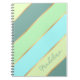 Rolig anteckningsbok för kvinnor eller flickor. Med vacker samtida flickig tealblå, akvatyrkos, ljus mint, pastellgul grön randig mönster. Med utrymme att anpassa med namn, monogram eller initialer som du väljer. Utbroderad, funkig, modern och nyckfull hipsterdesign för den eleganta konstnärliga fashionistan eller konstnärliga modefurstinnan, trendsettaren eller enkel retro randig konststilsmotivälskare.