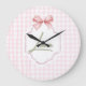 Personlig Luna Flicka Nursery Bow & Gingham Stor Klocka
