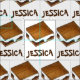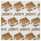 Fabric har en originalmarkörillustration av en chokladmarshmallow campfire-mera. Anpassa med ditt namn!
