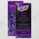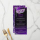 Redigerbara teman för maskeradfestmeny, födelsedagsmaskeradfestmeny, maskeradbal mall meny, maskeradfest, personlig lila och silver meny kort, lila och silver mall, gör-det-själv utskrivbar anpassad lila och silver, minimalistisk modern