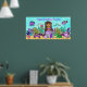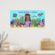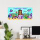 Vacker etniskt spanskt eller afroamerikanskt sjöjungfru som jag handritade med färgglatt korall, fisk, sköldpadda, krabba och annat roligt havsliv. En vacker tropisk scenaffisch för din dotters födelsedag. Lägg bara till hennes namn i det personliga området.