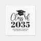 Denna enkla och moderna papperstallrik för examensfest har en ren, centrerad layout med en klassisk examensmössa och tofs placerad högst upp i designen. Strax under mössan visas "class of" i elegant handskriven stil, följt av examensår, som kan anpassas till "Class of 2026" eller vilket år du väljer. Under året visas examenklassens namn och skolans namn i tidlösa serif-teckensnitt för en polerad, balanserad look.