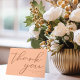 Våra söta persika bröllop tack-kort har elegant ljusbrun skrift för en trendig, minimalistisk eftermiddagsfest. Ett personligt tack-kort för en feminin brud som älskar att vara modern och uppdaterad.