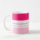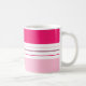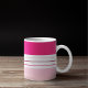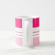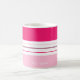 Det moderna kaffet mugg har ett färgstarkt mönster med rosa och vitt rand. Anpassa det med ditt namn vid grund.
