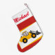 Personlig Modern Gult Loader Tractor på Red Liten Julstrumpa