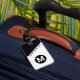 Slimmad elegant typografi stil. Klassisk duotondesign med namn inledande brev med monogrammet. Personlig modern resgodsmärkning för manar. Elegant presentidé för pappa, morbror, far, bror, make, arbetstagare, chef, kollega osv. Manly stripe-design. Vitt och svart färg.