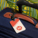 Slimmad elegant typografi stil. Klassisk duotondesign med namn inledande brev med monogrammet. Personlig modern resgodsmärkning för manar. Elegant presentidé för pappa, morbror, far, bror, make, arbetstagare, chef, kollega osv. Manly stripe-design. Bränd Orange och persikor.