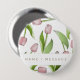 Produktdesignen har en mönster av rosa tulpanblommor. Denna botaniska illustration med personlig gör en modern och unik knapp - Gift-idé för födelsedag, Påsk, Mor-dagen, möhippa, bröllopsfavoriter med mera!