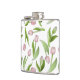 Produktdesignen har ett mönster av rosa tulpanblommor. Denna botaniska illustration med personlig text gör en elegant modern och unik flaska - Gåvaidé till födelsedag, påsk, mors dag, bröllop och mer!