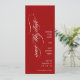 Modern Spara datummeddelanden i Bröllop med vit text på röd bakgrund. En fet design som kombinerar modern inslag med elegantens skripttext. Utformning av Elke Clarke Dedesign ©2011. Fler inbjudningsutformningar finns på www.luxuryweddinginvites.com. En elegant blandning av finare-skript med modernt teckensnitt för bröllop förlovning-annonstexten. Lägg till din personliga bröllop-information med hjälp av anvisningarna eller välj "anpassa" för att ändra färgen i bakgrunden och anpassa din inställning till att spara datumkorten.