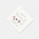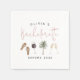 Få igång festen med dessa söta anpassade servetter som är lätta att anpassa för din möhippa, sängvätning eller tjejweekend! Boho-stil design med vingodstrakter har ömtåliga akvarellillustrationer av sandaler, ett paljeträd, champagneglas och rött vin med dammig rosa accentbokstäver. Anpassa med tre rader anpassad text; visas med brudens namn, evenemangstyp, plats och datum.