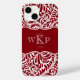 Personlig Monogram Cranberry Damask Pattern-telefonväska