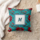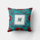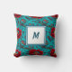 Tillsätt en touch av livfull lyx i ditt hem med denna fantastiska personliga monogram-kudde. Med ett invecklat botaniskt mönster av djärva röda blommor och utsmyckade motiv på en djup teal bakgrund, förenar denna design perfekt bohemisk anda med elegant sofistikation. Mitten har en ren vit fyrkant för din anpassade initial (visas med en stilren blå M), vilket gör den till en verkligt unik pjäs.