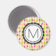 En magnet med en söt sommartid i mönster med popsiklar och glasskoner i färgstarka vibrerande vattenfärger. Skriva anpassningsbarnas monogram inuti ett runt ram med en vit blomform.