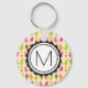 En nyckelkedja med söt sommartid i mönster med popsikler och glasskoner i färgstarka, klara vattenfärger. Skriva anpassningsbarnas monogram inuti ett runt ram med en vit blomform.