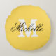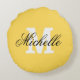Personlig monogram gulfärgad rund kastkudde. Vintage-design med monogram initial bokstav. Chic heminredning för soffa soffhörn säng stol bil etc. Elegant skript typografi mall. Trendiga kuddar.