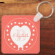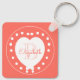 Personlig Monogram Namn Coral White Heart Nyckelring