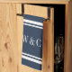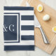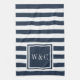 Eleganta personliga initialer monogram kökshandduk med ett navyblått och vitt randigt mönster med dina initialer. Designad av Thisisnotme©