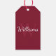 Personlig Monogram och Namn Burgundy Red Presentetikett