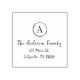 En tidlös returadress frimärke med en ren cirkel i monogrammet parad med tryckbokstäver för elegant. Perfekt för personlig e-post eller brev till familjen, bröllopsinbjudningar, tackkort och daglig korrespondens. Anpassa med ditt efternamn och adress för att skapa en snyggt och praktisk avslutande beröring för alla dina kontorsprogram.
