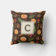 Personlig Monogram Rustic Botanical jul Dekorativ kudde. Sömlös mönster av pinekoner, gräs-sprickor, orange, kanel och stjärnanis. Kompletterar den moderna juldekanen för skogsområden. Anpassa mallen med ditt monogram först. Bakgrunden till färg kan ändras. Dubblans utformning. © Kimbelled, LLC