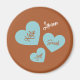 Den här söta designen börjar med en rik med en nötskön brun bakgrund och har tre koordinerande hjärtan i ett kluster, som håller din älskade namn.. i modernt typsnitt. Ditt namn ligger precis ovanför. Lägg till namn genom att följa uppmaningen "Anpassa den här mallen". Gör en underbar gåva till mamma! Den här knappdesignen ser också ut att slå på den samordnande plattan och ugnmitt!