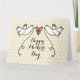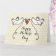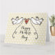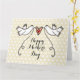 En illustration av 2 vackra duvor som håller i ett fladdrande band med ett kärlekshjärta fäst.