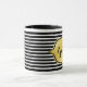 Personlig mugg med modern, svart, strimlad bakgrund och guld-folie där du kan lägga till din egen text. Lägg till ett namn, ett datum, ett roligt-meddelande! Modern och roligt mugg för alla tillfälle.