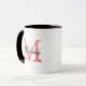 Personlig mugg med brev för elegantnamnmonogram. Skrivar monogrammed ringercoffeemug för vintage med snyggt brev. Gullig födelsedag eller för manar idé för partyfavörgåva och kvinnor. Kopp för snyggt 11oz med rosa och svart färger för elegant korall. Också tillgängligt som den extra stora oversized muggen och stort att gå travel mug. Dubbla sid designdrinkware för kontor eller hem.