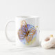 Utformningen av detta romantiska mugg bygger på en verklig tredimensionell kollage, så bilden verkar otroligt livlig och omfångsrik. En bronsfjäril på en skarpt blå vattenfärgad bakgrund gör mugg mycket ädelt och attraktivt. Du kan presentera det för en person du respekterar.