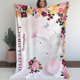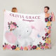 Personlig Namn Blanket med Elephant + Flowers Fleecefilt