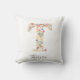 Personlig Namn & Blommigt Monogram "T" Dekorativ kudde.