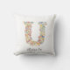 Personlig Namn & Blommigt Monogram "U" Dekorativ kudde.