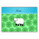 Cute fårpresentidéer. Skapa din egen anpassningsbar-Personlig lägg bara till namn, monogram eller initialer eller säg på dina söta tecknad får med grönt blommor mönster bakgrund och blått hjärta rand. Cute fårpresenter, för barn. Perfekt för helgdagar. Om du slått anpassningsknappen kan du ändra färg och typ av fästdon