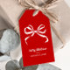 Backa dina presenter i elegant elegans med den här vackra märkrn i God jul. Mot en fet, klassisk röd bakgrund är en bedövande vit bandbåge centrum, komplett med ett sött hjärta i knuten. Den här fina och invecklade designen gör att presenterna blir lite mer sofistikerat i rätt tid och framkallar den klassiska känslan av helgdag. Under bågen är ord "God jul" skrivet i ett vackert, flytande skript som tillför en varm, personlig beröring som känns både glatt och uppriktig. Märkrn innehåller även utrymme för namn, vilket garanterar att varje gåva som du ge får inte bara presenteras på ett vackert sätt utan även på ett unikt sätt. Den här märkrn för helgdag i personlig är ett perfekt sätt att lägga till en sista, hjärtlig beröring till din presentförpackning, och skapar att presenter känner sig speciellt och noggrant förberedd för extra.