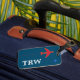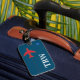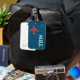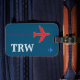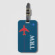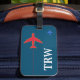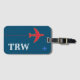 framsida:Ett rött flygplan på blå (anpassningsbar) bakgrund med resenärens namn-initialer tillbaka: ytterligare information för resan