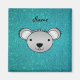 Personlig, namn koala ansikte, turkos glitter magnet