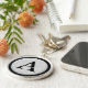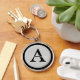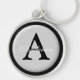 Anpassa den här silver-metalliska utseningsknappen som beskrivs i svarta runda nyckelkedjor med valfritt efternamn och monogram med en anpassningsbar.