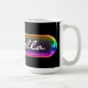 Lägg till en personlig touch i din dagliga rutin med denna snygga namn-mugg med iriserande glaseffekt. Med ett mjukt regnbågsskimrande band mot en djärv svart bakgrund skapar denna design ett modernt, lätt lysande utseende som känns både mysigt och elegant.