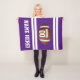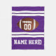 Lila och vitt lag färg för att rota och hala för pojkarna fotbollspatrullen! Underbar personlig för sportpojken på eller utanför fält. Med det här fantastisk-användarnamnet och nummer i den amerikanska fotbollsfilten med brunt pigskin boll och vitt namn och nummervariantetstext för lagspelaren MVP!