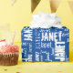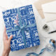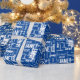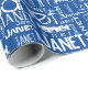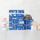 Typografilinslagning papper som kan vara personlig med namn eller ord på en liten . Texten visas i ett blått och vitt färg-schema. Gör ge extra speciell med den här inslagna pappra utformningen.