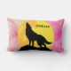 Silhouette med en varg ovanpå ett bergströ i måne med flerfärgad bakgrund kan det också vara personlig med vilket namn som helst som ni vill ge även denna kudde.