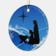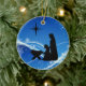 Personlig Vackert Silhouette Ntivity Scene jul Ornament i blå och vit nyans med stjärnfyllda flingor från himlar och snö.-