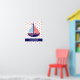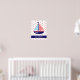 Denna söta affisch har en nautisk röd, vit och blå segelbåt på en bakgrund av vitt med röda prickar. Anpassa den matchande blåa randen med ditt val av namn eller speciell text.