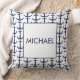 Marin Mönster Personlig Pillow Pamper ditt hem! Den här snyggten har en vågad blå och vit mönster som bakgrund, med vit bakgrund och marin gräns. Koordinerar med våra andra tillbehör i samma intervall. Anpassa med ett monogram, namn eller text som du vill ha!
